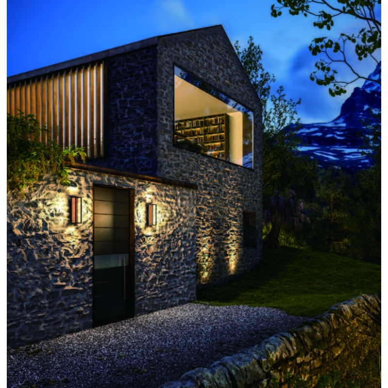 The NATURA LANTERN Seriesbrings the soulful warmth of wood to the architectural facade. Designed by the master Franco Pagliarini, this wall-mounted masterpiece features an open-frame design that allows light to wash over the textured SPC wood backplate, creating a soft, welcoming ambiance for any entrance or perimeter wall.